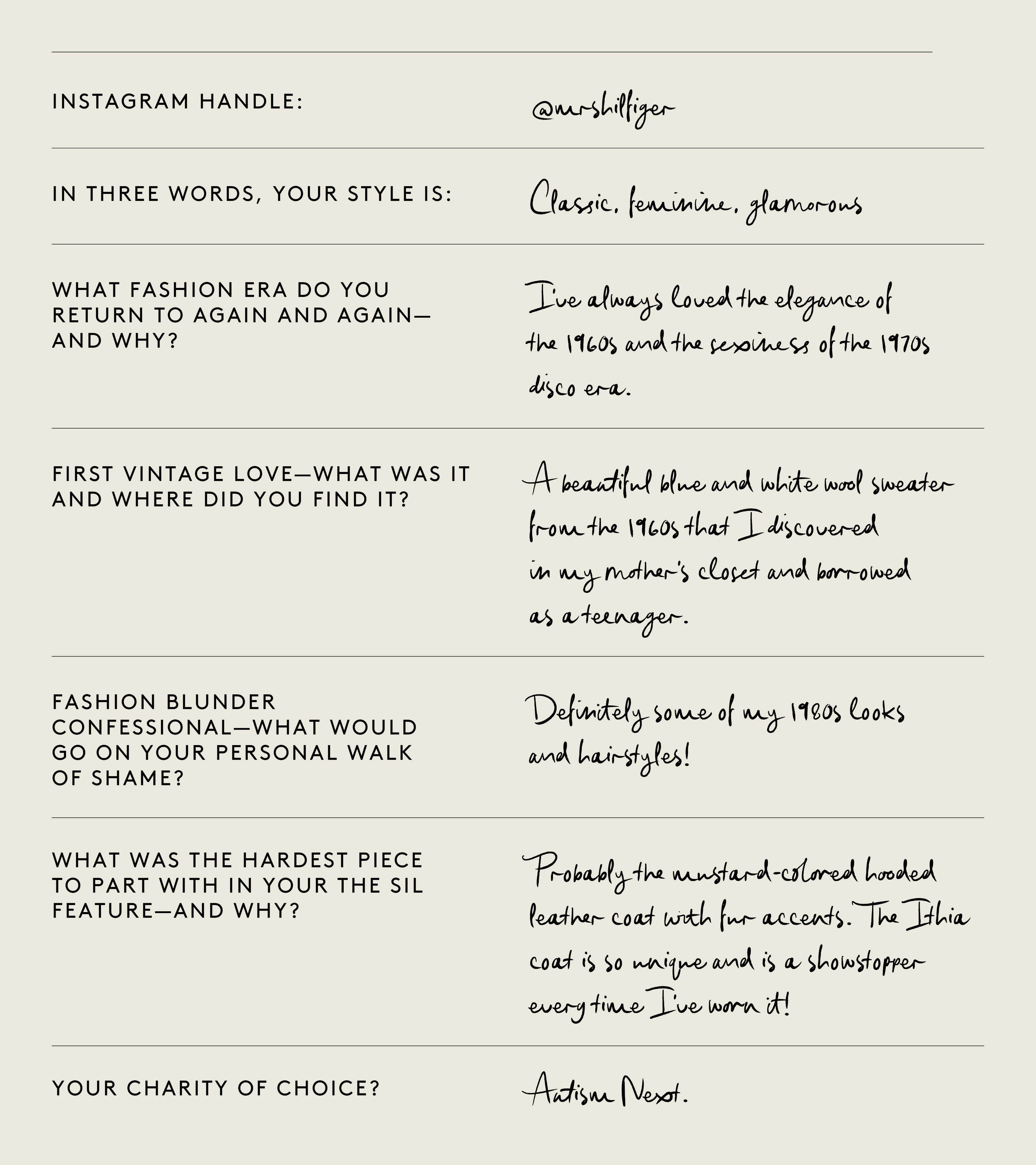 The SIL supports charities personally selected by each Closet Feature subject. With every sale, a portion of proceeds is donated to their chosen cause.